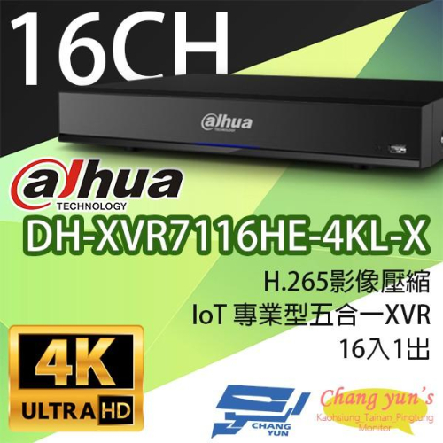 昌運監視器 DH-XVR7116HE-4KL-X H.265 16路五合一XVR 大華dahua 監視器主機