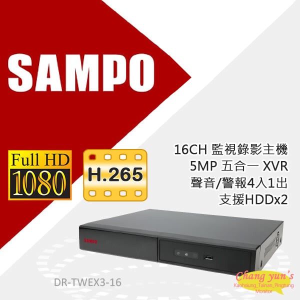 昌運監視器 聲寶16路監控錄影主機 DR-TWEX3-16 H.265 5MP