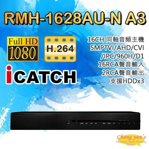 昌運監視器 RMH-1628AU-N A3 可取 16路 同軸音頻錄影主機 支援至五百萬畫素