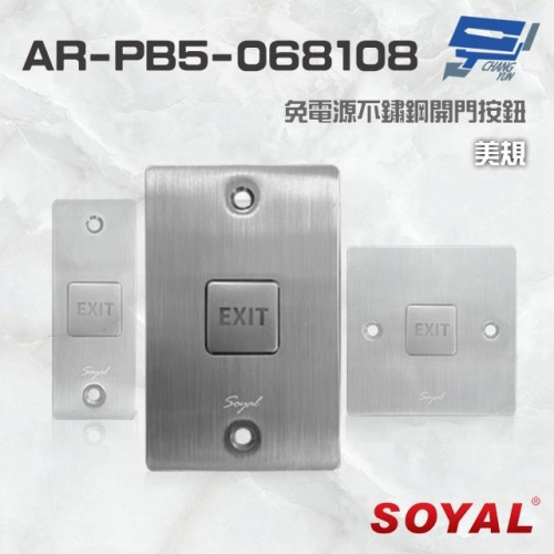 昌運監視器SOYAL AR-PB5-068108 美規 免電源不鏽鋼開門按鈕停產(以AR-PB5-072122新款出貨)