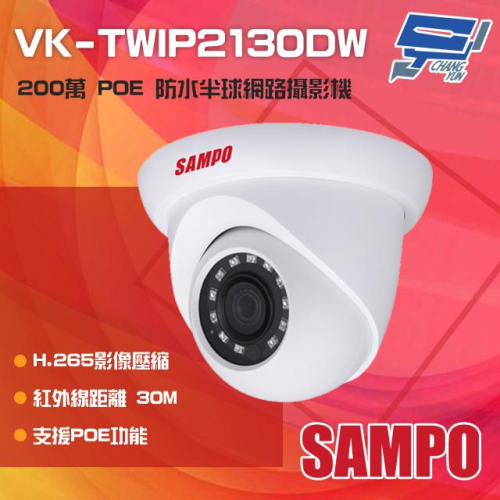 昌運監視器 SAMPO聲寶 VK-TWIP2130DW 200萬 H.265 POE 紅外線半球網路攝影機