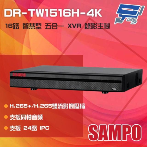 昌運監視器SAMPO聲寶 DR-TW1516H-4K H.265 16路 4K 智慧型五合一 XVR錄影主機