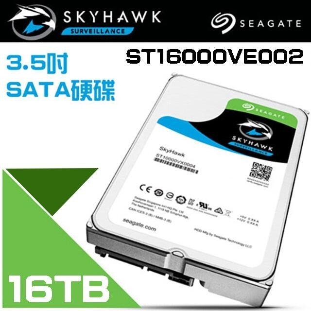 昌運監視器 Seagate 希捷 監控鷹 AI 16TB 7200轉 3.5吋監控硬碟(ST16000VE004)