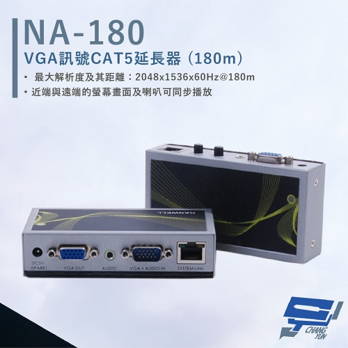 -傳送器與接收器之間,使用一條 CAT5/CAT5E UTP 纜線作連接,視訊訊號最遠可以延長至 180 公尺。