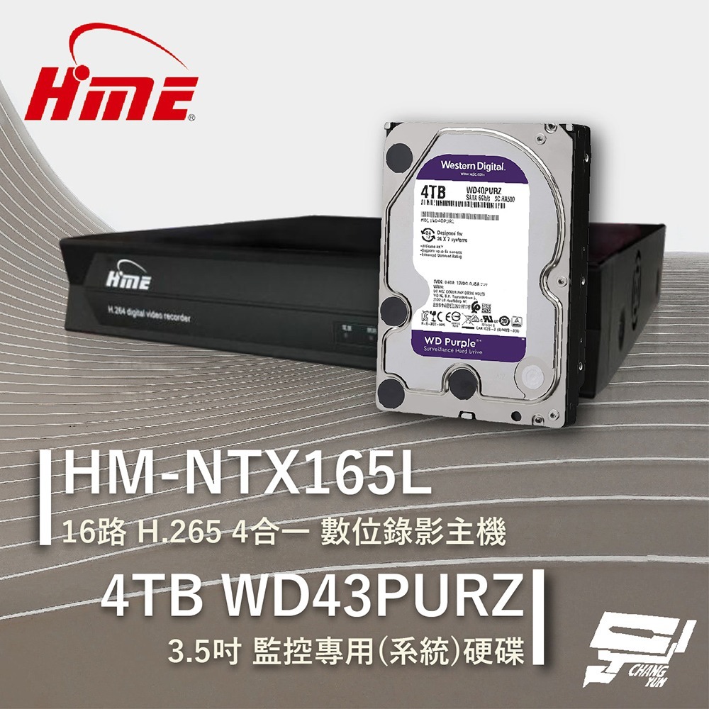 昌運監視器 環名HME HM-NTX165L 16路 錄影主機 + WD43PURZ 紫標 4TB