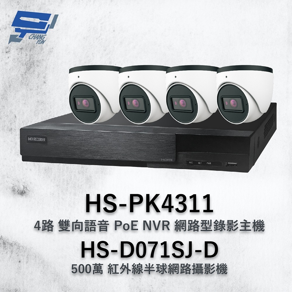 昌運監視器 昇銳 HS-PK4311(HS-PL4311)主機+HS-D071SJ-D(HS-D071WJ)攝影機*4