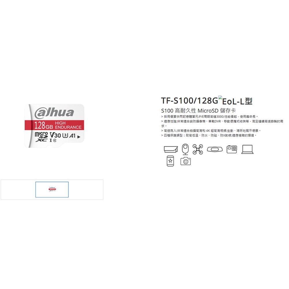 昌運監視器 Dahua大華DHI-TF-S100 128G EoL-L型 MicroSD儲存卡監控網路攝影機專用記憶卡