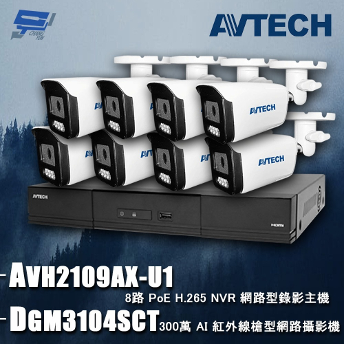 昌運監視器 AVTECH陞泰組合 DGH1107BX-U1 9路主機+DGM3104SCT 3MP 網路槍型攝影機*8