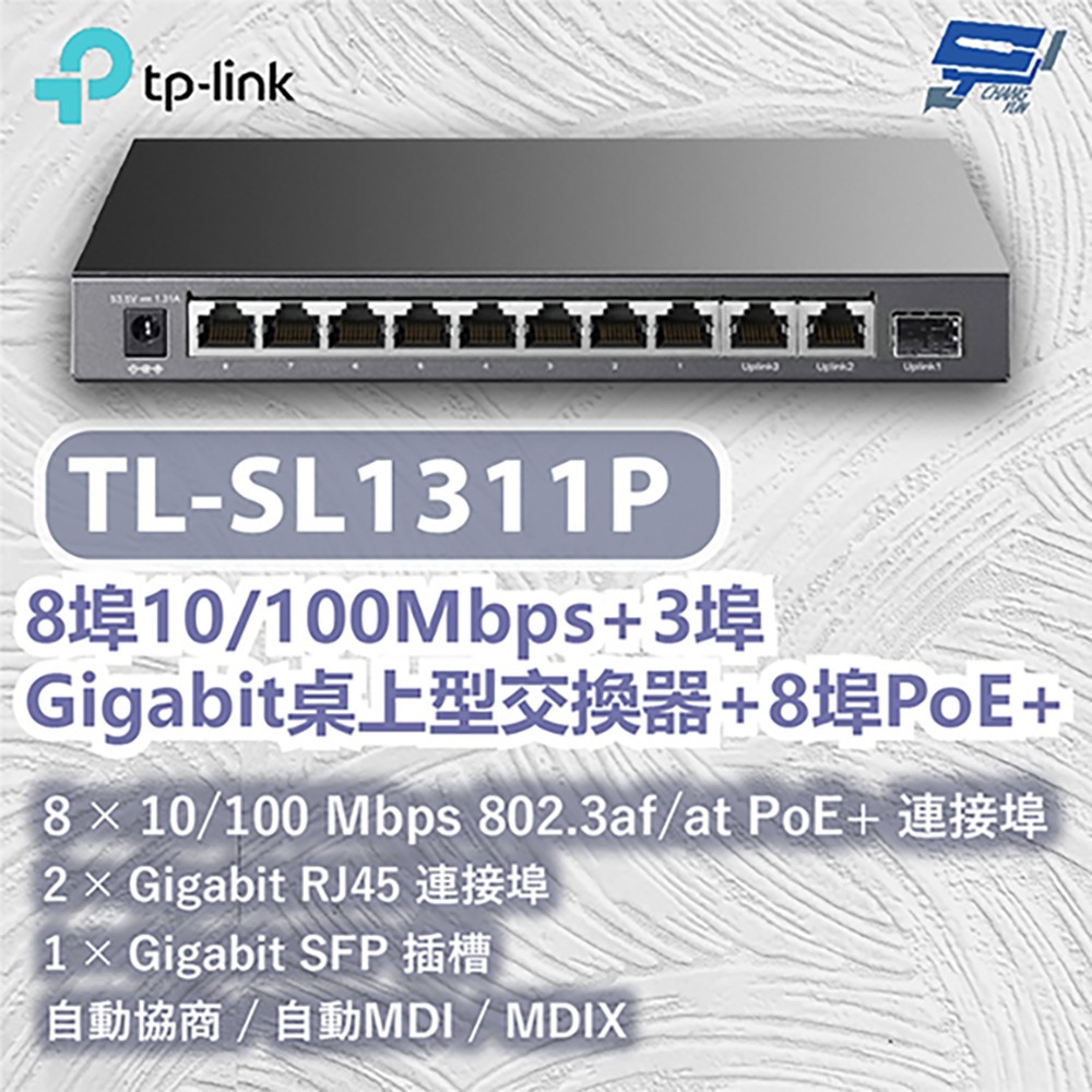 -8× 10/100 Mbps RJ45 連接埠、2× Gigabit RJ45 連接埠、1× Gigabit SFP 插槽