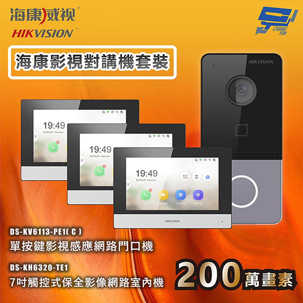 昌運監視器 海康影視對講機套裝 手機對講 手機開鎖 7吋觸控式網路室內機 1台門口機+3台室內機