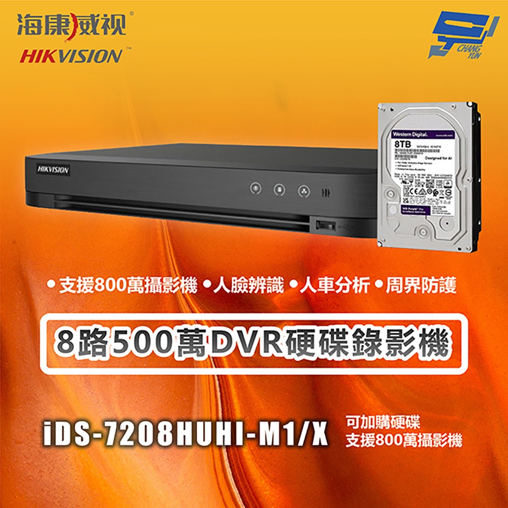 昌運監視器 海康 iDS-7208HUHI-M1/X 8路500萬DVR硬碟錄影機支援800萬攝影機 主機+8TB硬碟