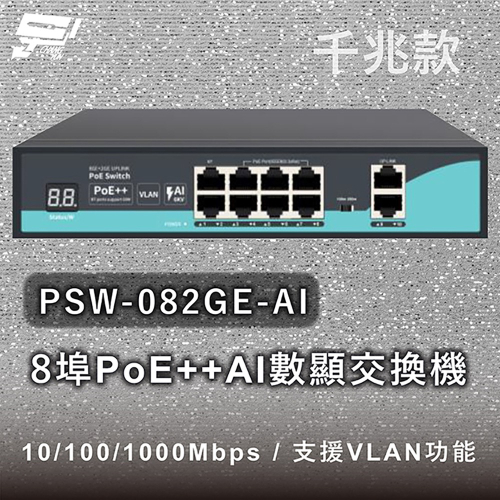 昌運監視器 PSW-082GE-AI 8埠千兆款PoE++ AI數顯交換機 10/100/1000Mbps