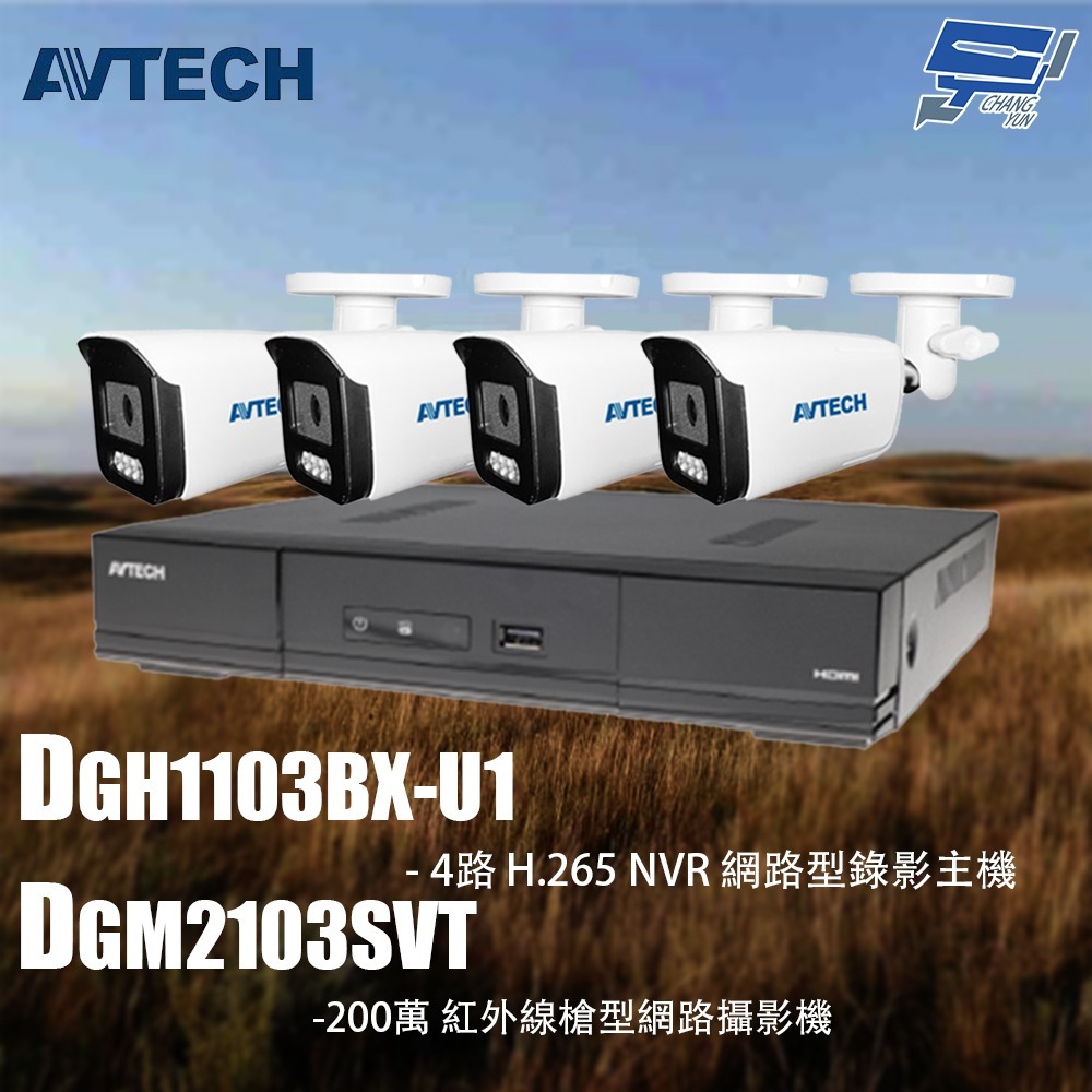 【此組合為 AVTECH陞泰組合 DGH1103BX-U1 4路 主機+DGM2103SVT 200萬 紅外線槍型網路攝影機4支】
