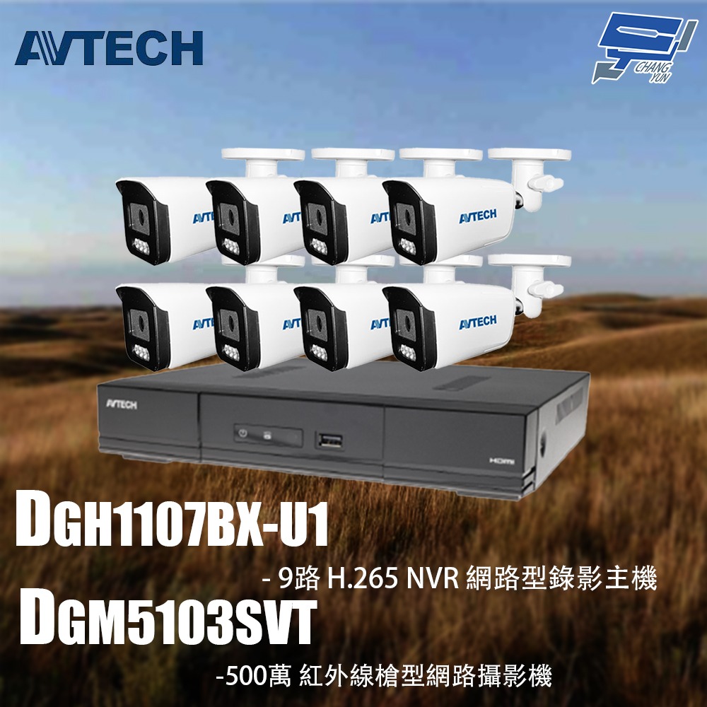 【此組合為 AVTECH陞泰組合 DGH1107BX-U1 9路 主機+DGM5103SVT 500萬 紅外線槍型網路攝影機8支】