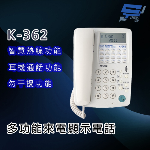 具來電顯示功能(FSK/DTMF 雙模),可動態儲存最多100組來電號碼