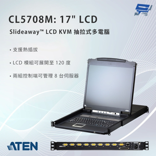 整合具備 17" LED背光LCD之液晶螢幕的KVM控制端於單一抽拉式機身內
