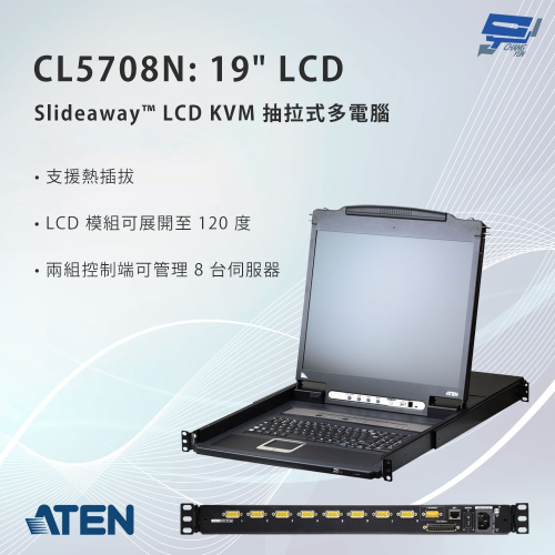 整合具備19" LED背光LCD之液晶螢幕的KVM控制端於單一抽拉式機身內