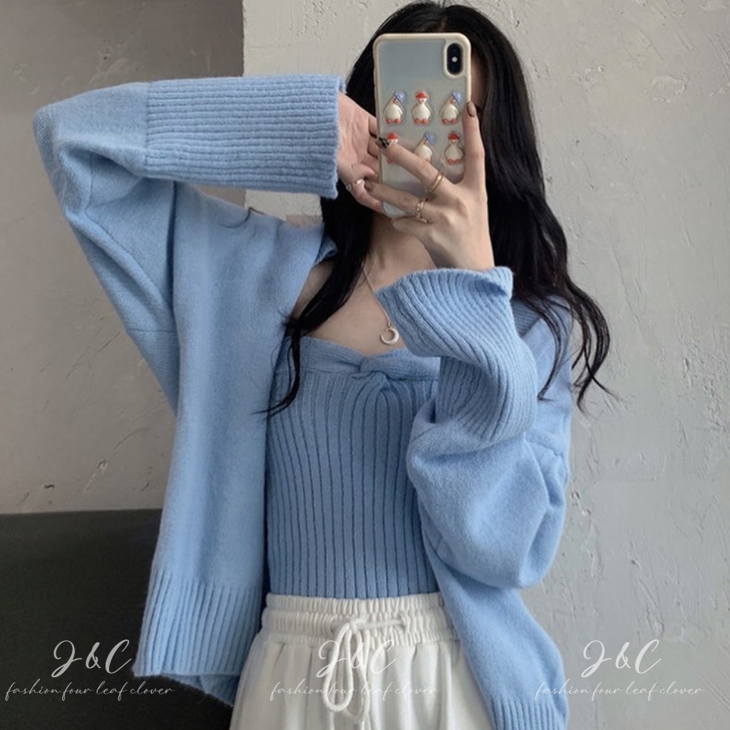 慵懶氣質 平口小背心+毛衣罩衫