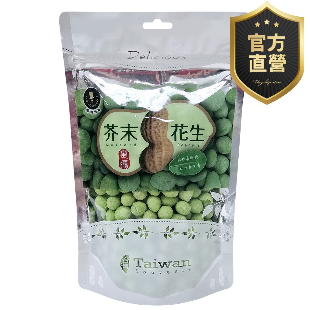 成 分|花生、麵粉(小麥、小麥澱粉)、油{棕櫚油、芥花油、抗氧化劑[第三丁基氫醌(丙二醇、第三丁基氫醌、無水檸檬酸)]}、乙醯化已二酸二澱粉、氧化澱粉、麥芽糖(樹薯澱粉、水)、鹽(鹽、亞鐵氰化鉀)、芥末粉{辛烯基丁二酸鈉澱粉、芥末香料[香料、抗氧化劑(維生素E)]、麥芽糊精、脂肪酸甘油酯 (植物性)、黃梔子色素、梔子藍色素}、甜味劑(蔗糖素)、美力精粉(L-麩酸鈉、琥珀酸二鈉、5'–次黃嘌呤核苷磷酸二鈉、5 '–鳥嘌呤核苷磷酸二鈉、DL-胺基丙酸)、抗氧化劑(異抗壞血酸鈉)、食用綠色 B(食用黃色4號、食用藍色1號)