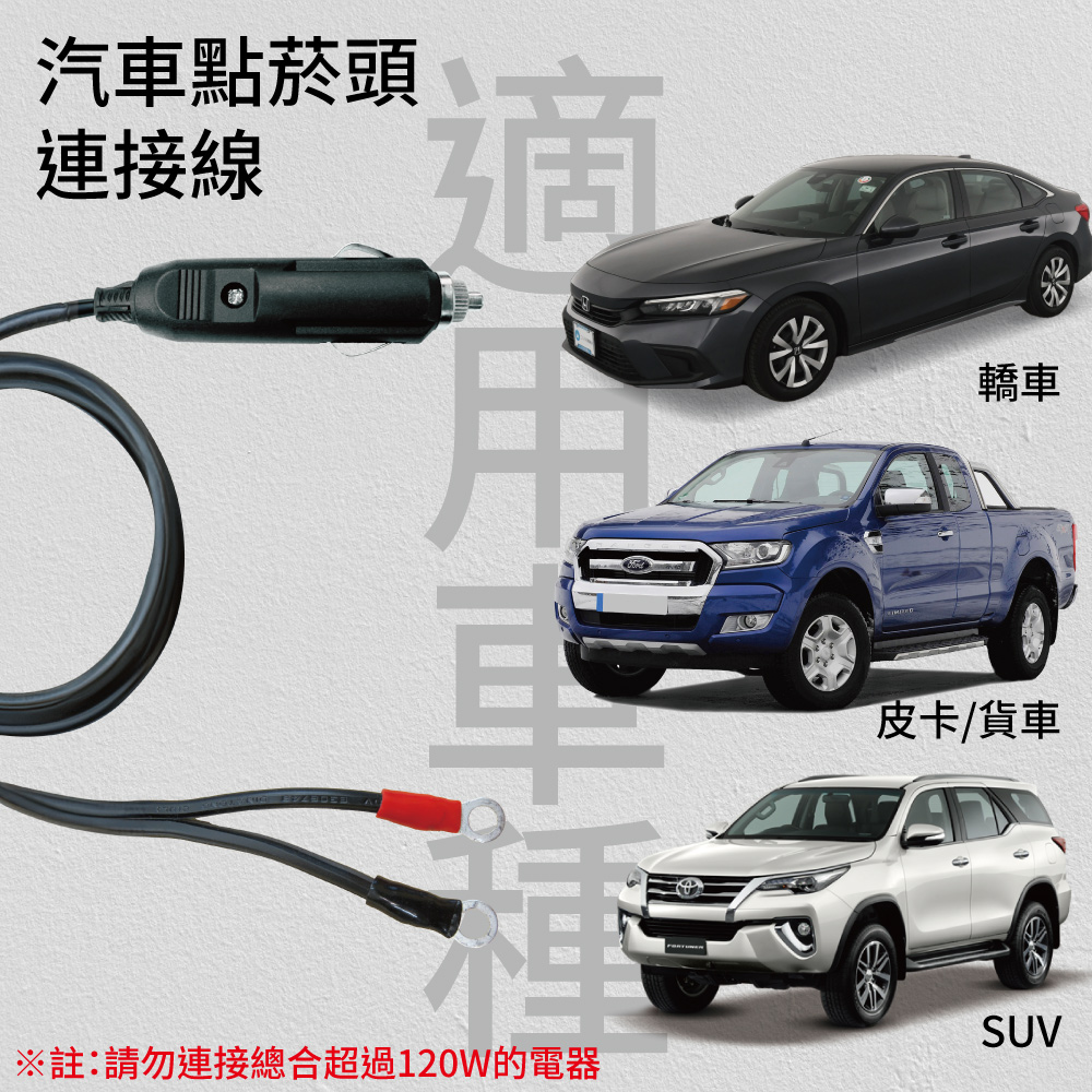 汽車點菸頭連接線 *1條(使用時不可連接總和耗電功率超過120W的電器)