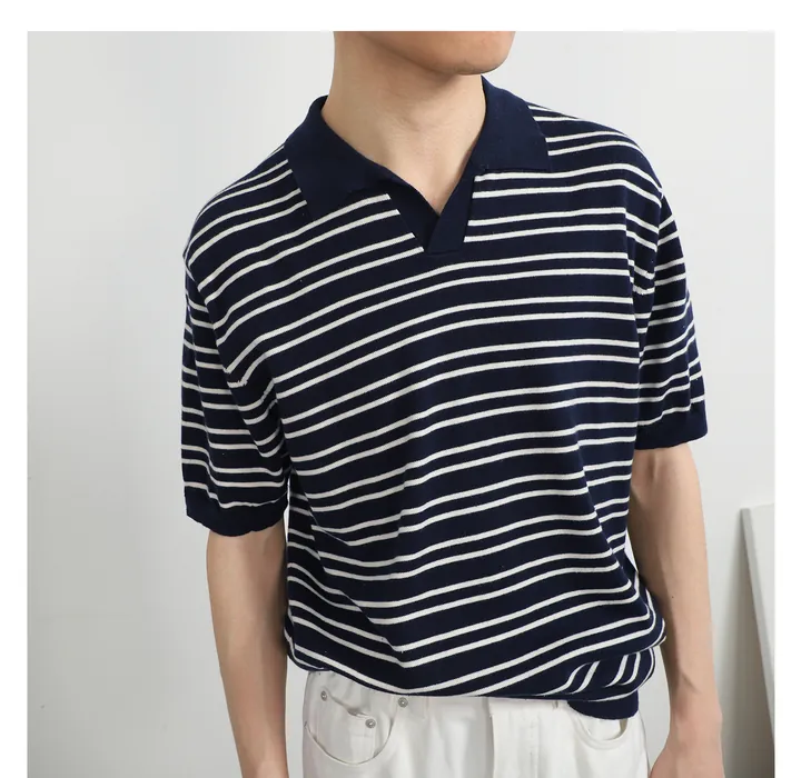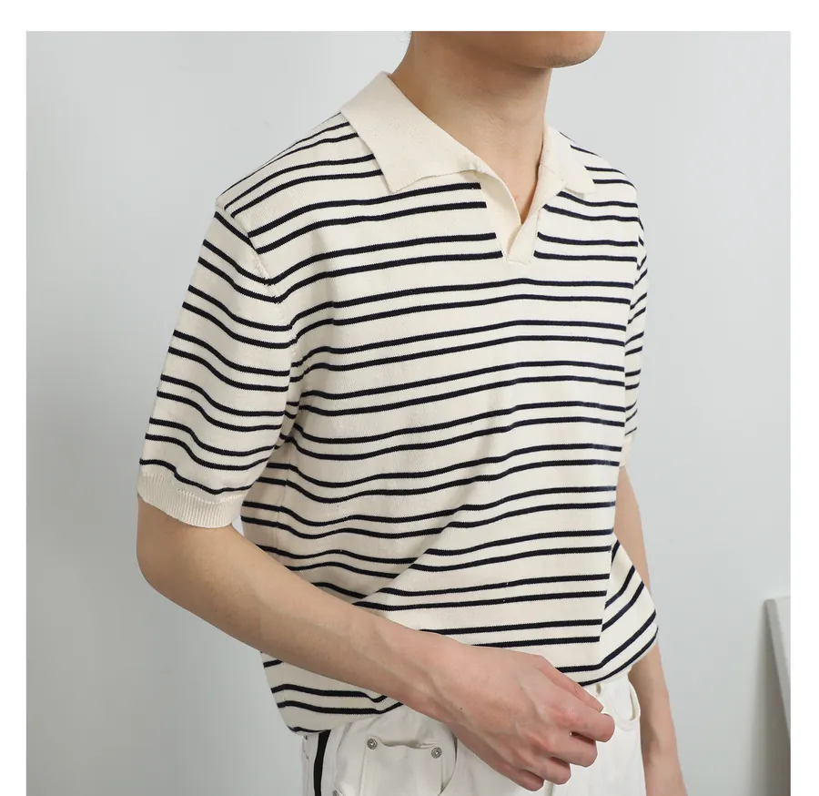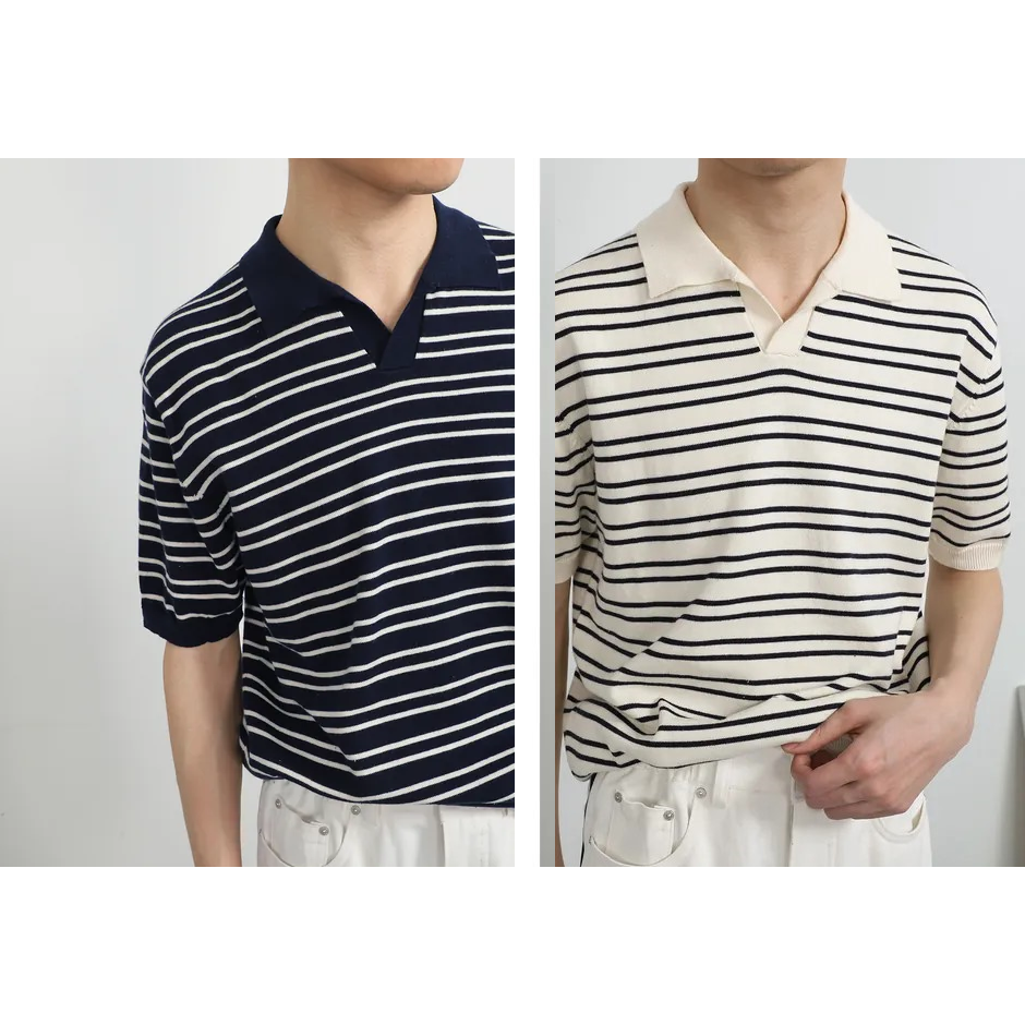 【黃道宙域】男士 百搭 條文 短袖 V領 翻領 POLO衫 短袖 夏季 男裝 穿搭 服飾
