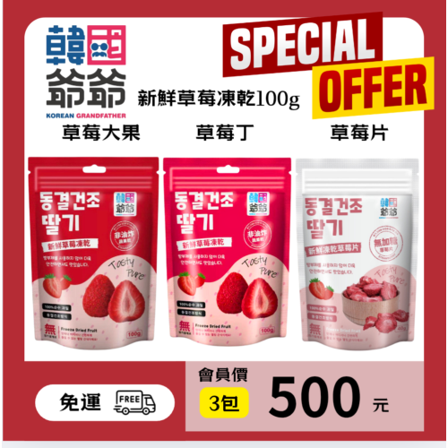 【激推優惠】全新精緻紅🍓 韓國爺爺 草莓凍乾100g (1組3包)