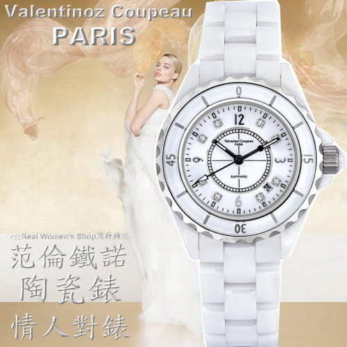 法國巴黎 Valentino 范倫鐵諾 藍寶石水晶鏡面 全陶瓷錶 情人對錶 男錶 女錶(2色可選)