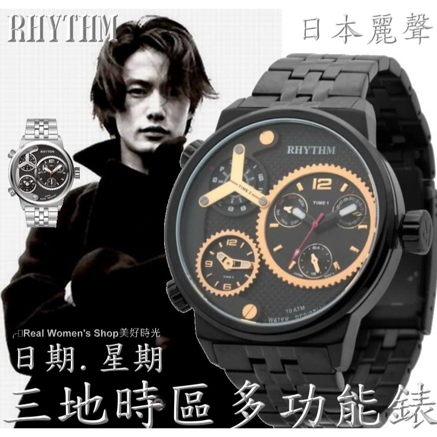 日本精品 RHYTHM 麗聲 三地時區多功能錶 日期/星期顯示 商務休閒多用途 時尚潮男錶