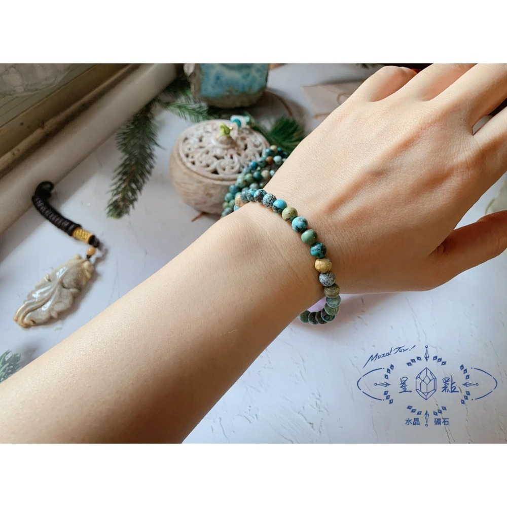 一直很喜歡綠松石手珠,這種帶著鐵花紋路的更是有一種他獨幟一格的感覺(笑)