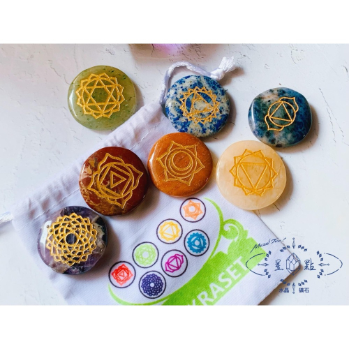 不只顏色,礦石上還有脈輪符號,用來靜心冥想、或者針對脈輪做療癒都很棒唷~