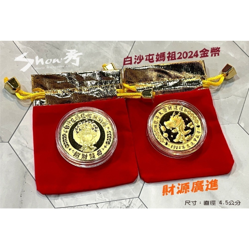 【秀秀文創生活館】最新2024甲辰年Q版白沙屯媽祖龍年金幣(絨布裝)
