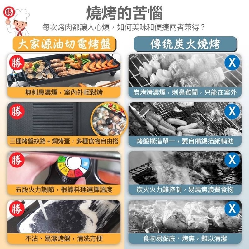 👉🏻超大面積烤盤+薄型機身設計,可同時進行多樣料理
