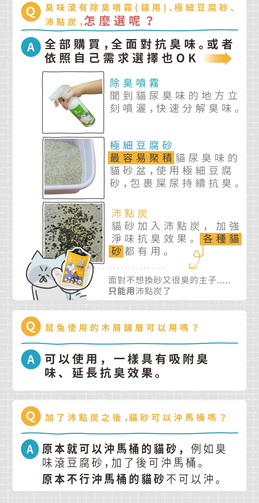 當貓砂盆有異味後添加,並翻攪加強除臭效果