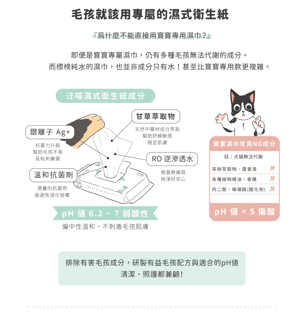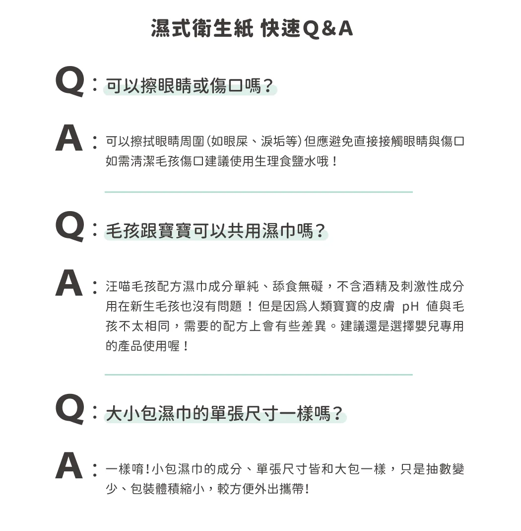 🔸 成分單純,可擦拭毛孩淚痕、下巴及腳掌