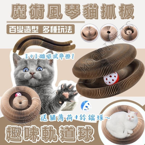 【品名】:百變磁吸式魔術風琴貓抓板🐈 贈🎁鈴鐺球+貓薄荷🔥👍👍👍