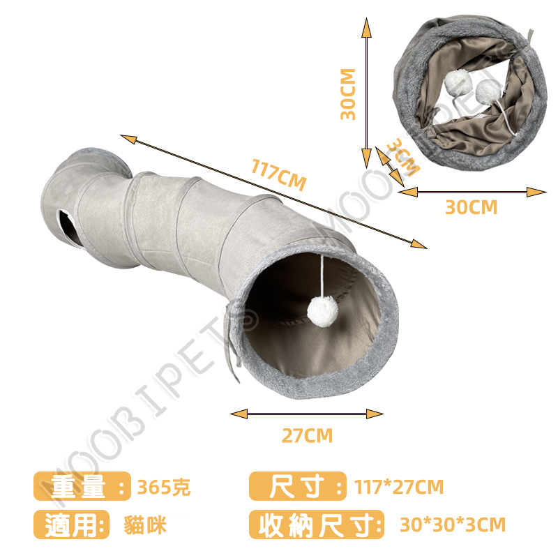 • S 型設計 + 不透光布料 + 懸掛逗貓球,勾起貓咪探險慾望🐾
