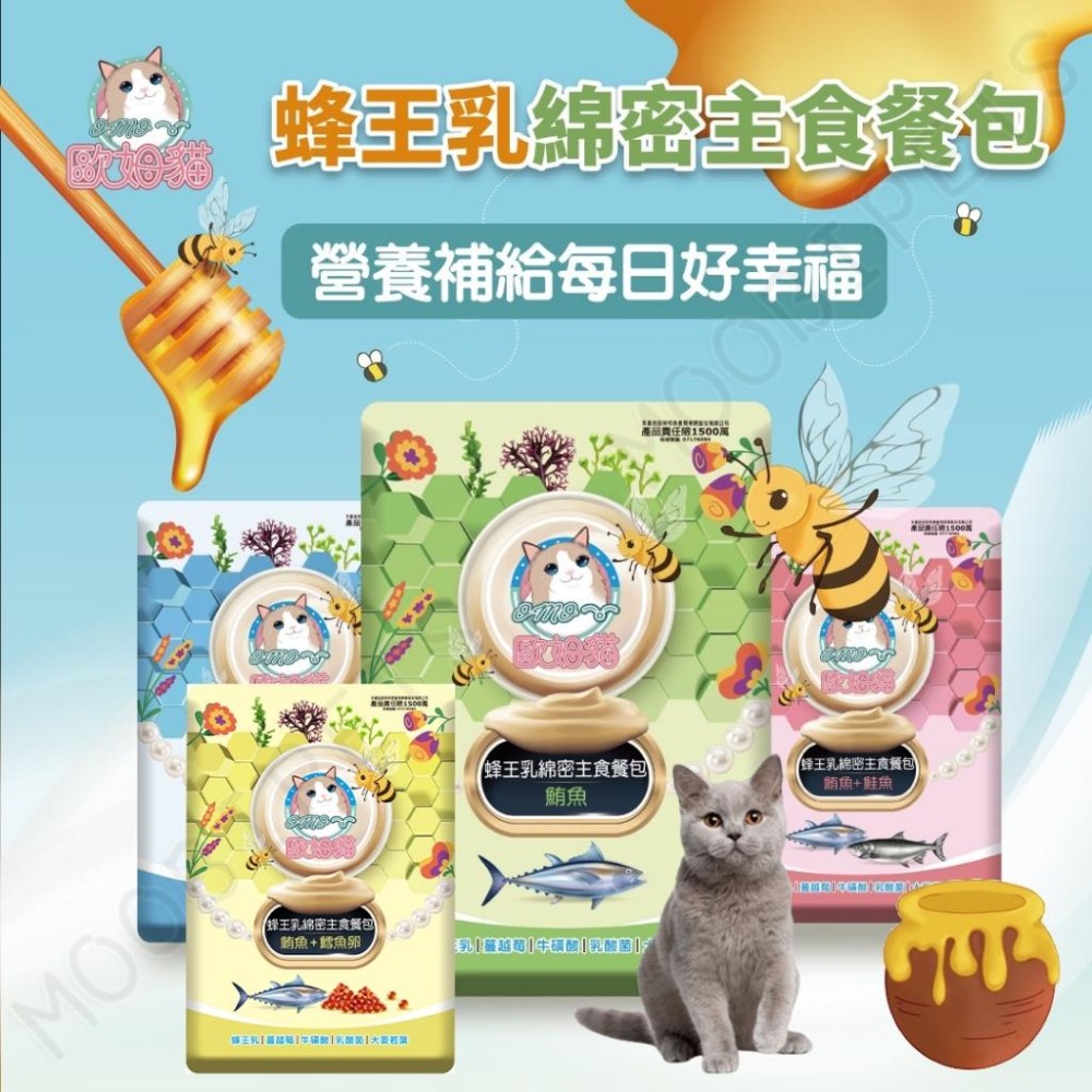 成分:水,鯖魚,干貝,魚油,木薯澱粉,增稠穩定劑,寡糖,大麥若葉,蜂王乳,乳酸菌,蔓越莓萃取,牛磺酸,綜合維生素(A,B1,B2,B3,B6,B7,B9,B12,C,D,E),礦物質(Ca,P,Fe,Cu,Mn,Zn,I,Se)