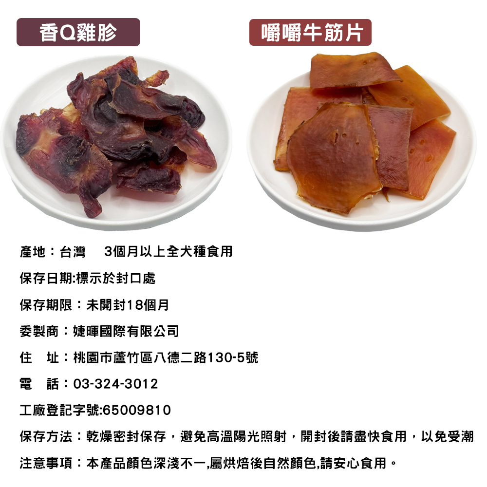 成分:豬耳朵、植物甘油、碳酸鈣、山梨酸鉀、維他命E。