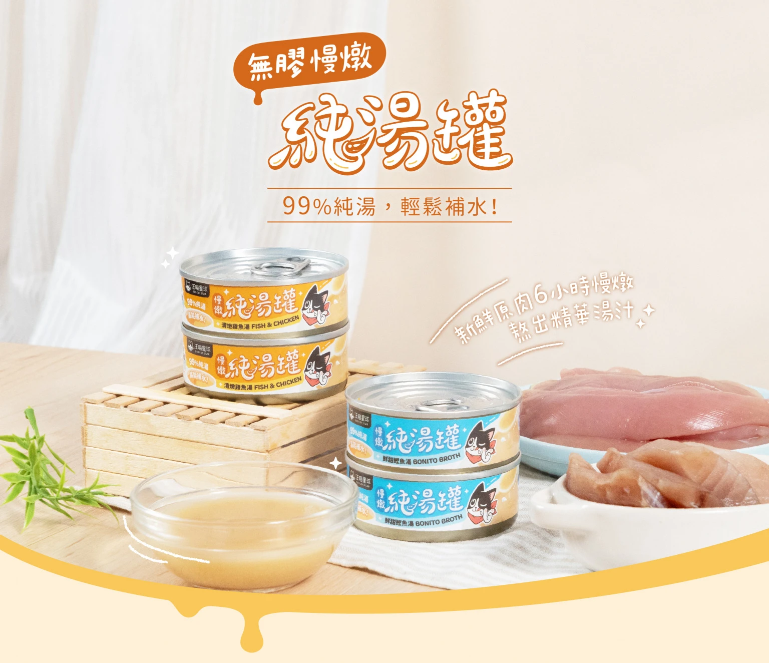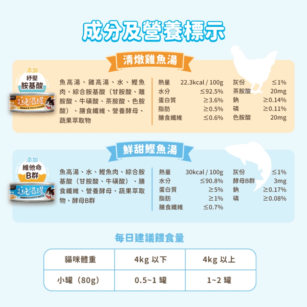 • 純湯罐僅作為副食用,需搭配全營養主食一起給予
