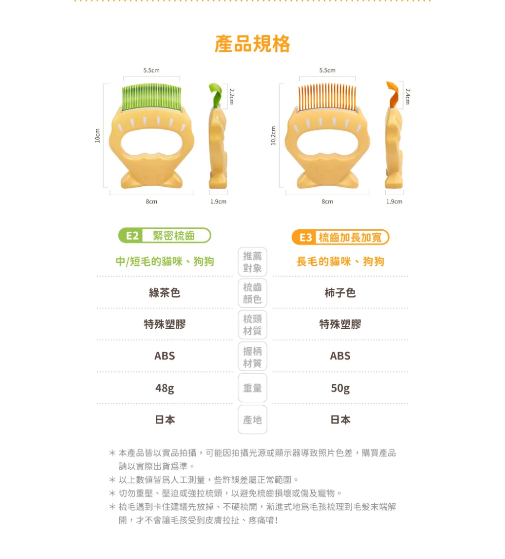 💡 切勿重壓、壓迫或強拉梳頭,以避免梳齒損壞或傷及寵物