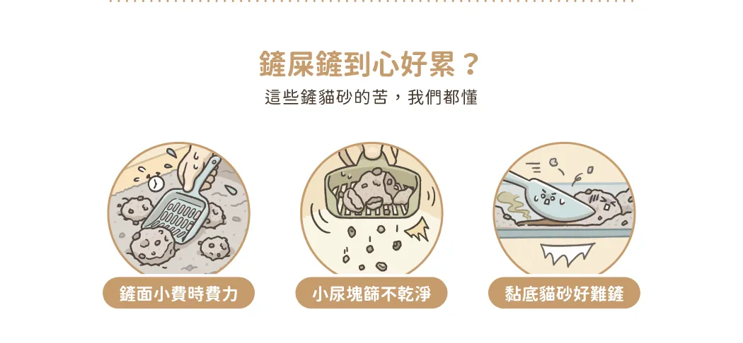 快速篩出大團塊與小尿塊,推薦給使用礦砂、豆腐砂、混砂的毛孩家庭喔!