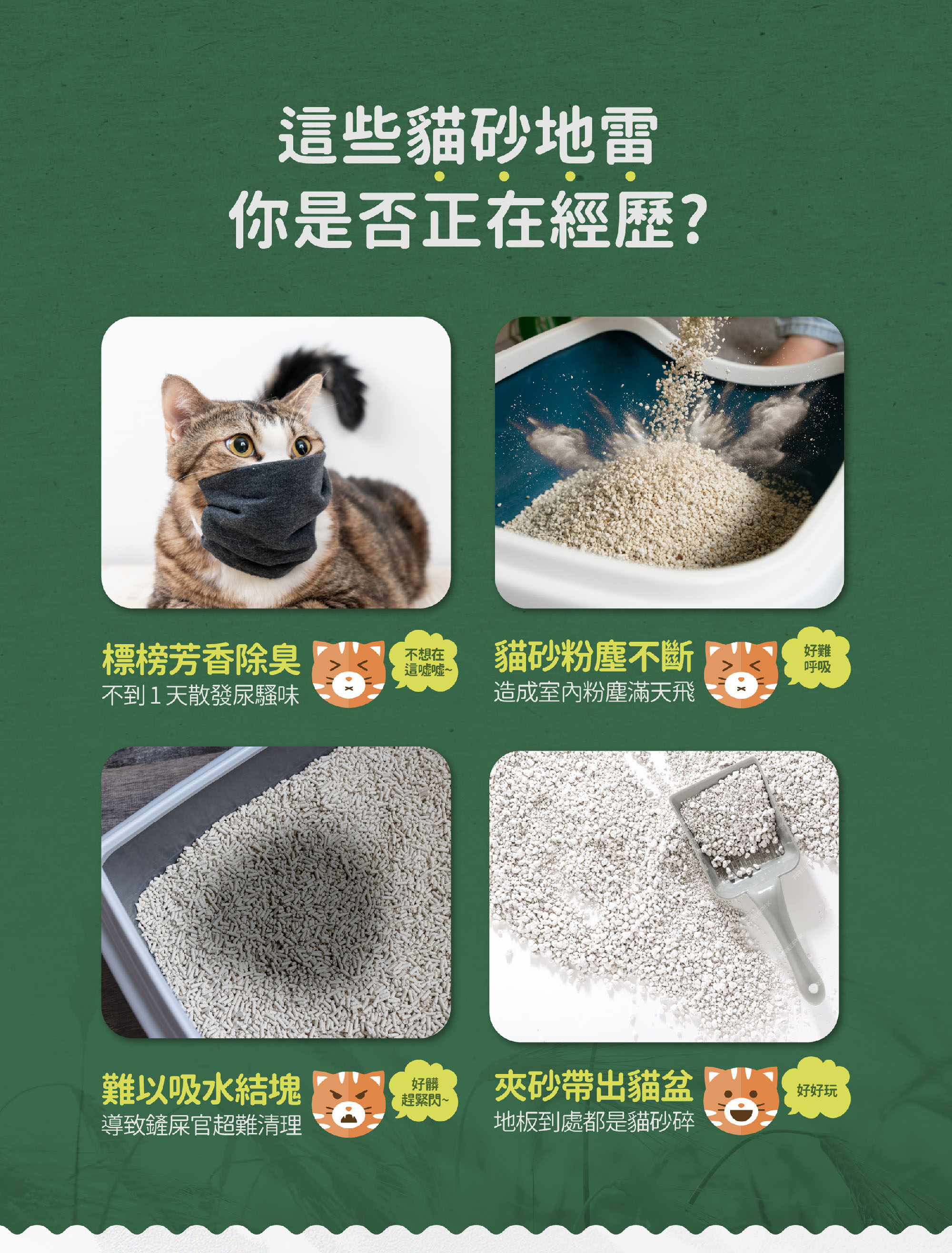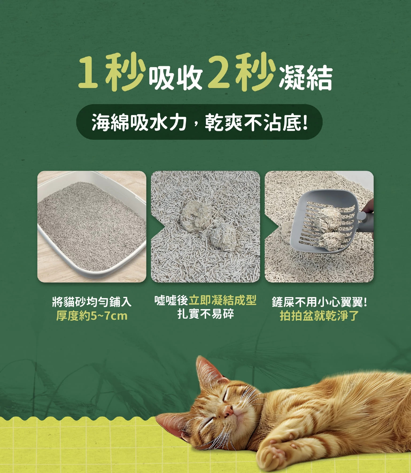 1秒吸水、2秒凝結、3秒消臭,快速反應力讓貓咪如廁後即刻凝結並封鎖異味,清理更方便,可直接沖馬桶。