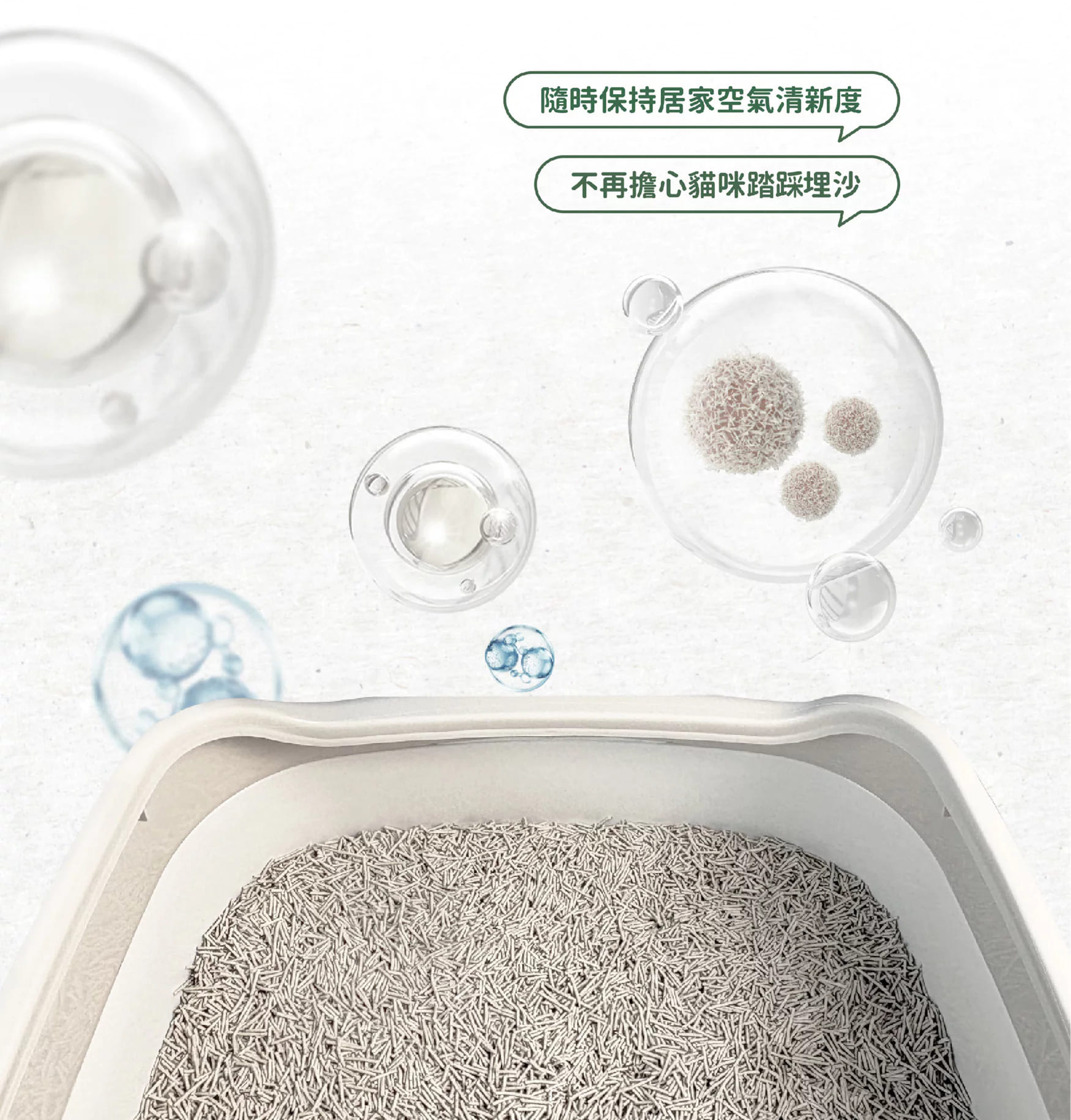 妥善處理用過的猫砂 (可沖入馬桶或打包丢入垃圾桶) 並每月進行一次徹底清潔,確保猫砂盆衛生乾淨。