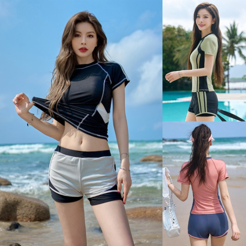 商品說明:短袖泳衣(內有胸墊)+短泳褲(雙層褲)