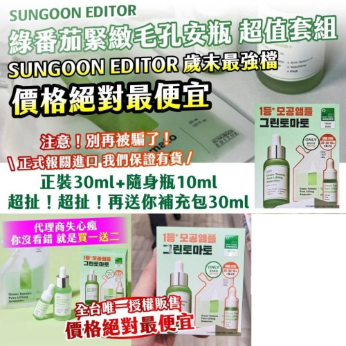 韓國製造SUNGBOON EDITOR 綠番茄緊緻毛孔安瓶 超值套組 ☑️使用方式:清潔完臉部,於化妝水後使用 取適量塗抹於全臉,輕柔按摩至吸收,即可進行其他保養程序 產地:韓國 效期:2027.09