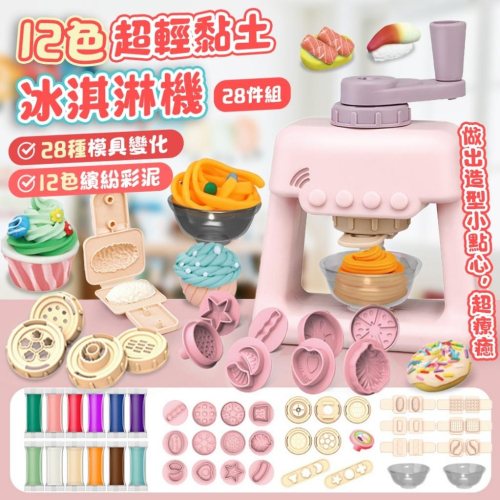 現貨 12色超輕黏土冰淇淋機 28件組 兒童彩泥黏土玩具 想像力 冰淇淋機 手眼協調 親子互動 兒童黏土玩具