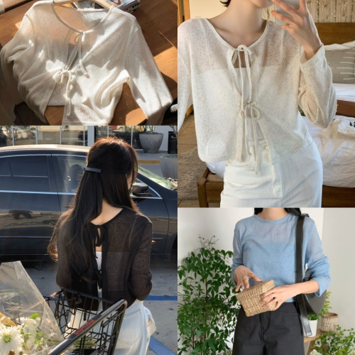 🇰🇷[韓妞穿搭-現貨]A024 98度C 98製作 透膚雙綁帶兩穿亞麻罩衫 蝴蝶結 上衣 罩衫 98doci