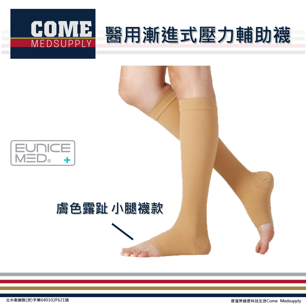 【EuniceMed】醫用輔助襪/漸進式壓力襪(CPS-3004-BG露趾膚色小腿襪 靜脈曲張/彈性襪/久站/舒緩減壓)