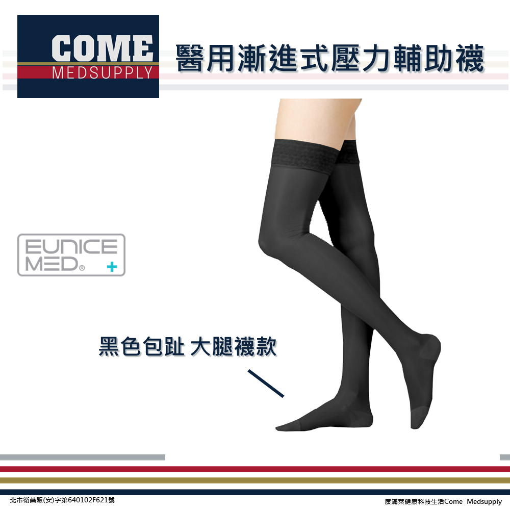 【EuniceMed】醫用輔助襪/漸進式壓力襪(CPS-3302-BK包趾黑色大腿襪 靜脈曲張/彈性襪/久站/舒緩減壓)