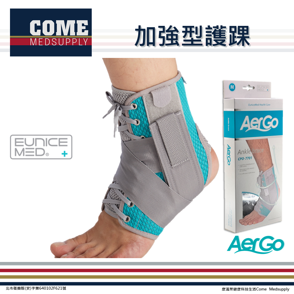 【Aergo】加強型護踝(CPO-7701)(腳踝關節支撐保護/兩側塑膠夾板固定/透氣網布/抽繩綁帶)